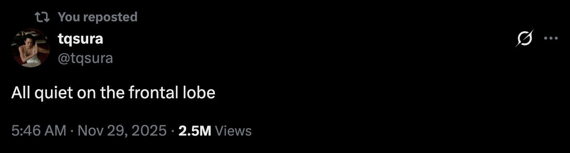 Okay this is me being a little bit naive I guess since I mostly go to the movies on Tuesdays and on top of that I exclusively use my Scene points to pay for them, but I paid EIGHTEEN DOLLARS to see Wicked: For Good on a Wednesday in front of THEATRE BRATS who TALKED THE WHOLE TIME. What the hell.